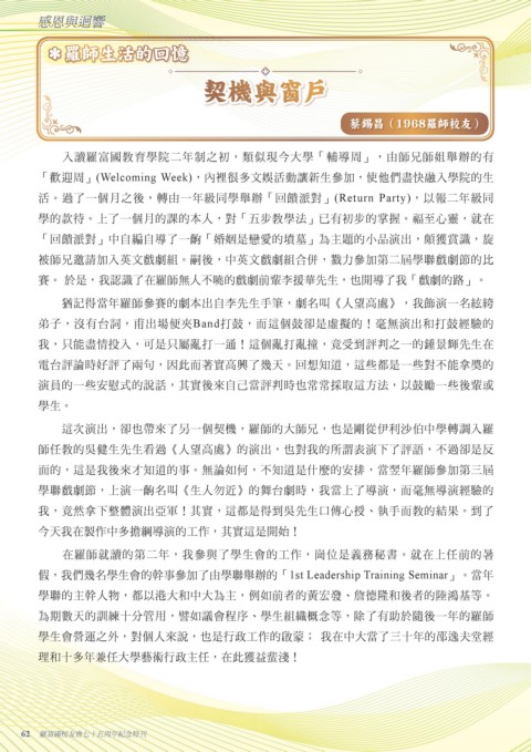 賽。 於是,我認識了在羅師無人不曉的戲劇前輩李援華先生,也開導了我「戲劇的路」。