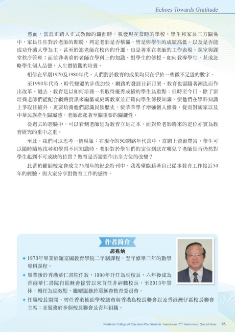 此番於羅師校友會成立75周年的紀念特刊中,我希望能藉著自己從事教育工作接近50