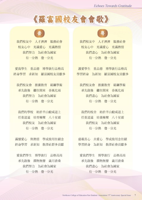 Northcote College of Education Past Students’ Association 75 Anniversary Special Issue 7