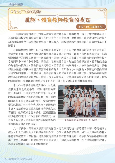 當時同學多本著「多專多能」的理念,積極裝備自己,無論是在教學知識、體育技能或是