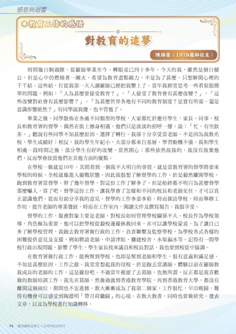 正認識他們,從而有助分享我的意見。督學的工作多姿多彩,時而探訪學校,時而舉辦工