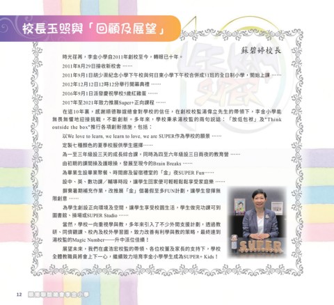 在這10年裏,感謝順德聯誼總會對學校的信任,在創校校監湯偉立先生的帶領下,李金小學能