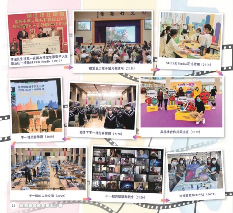 李金先生捐款一百萬為禮堂增添電子大螢 幕及在一樓設SUPER Studio(2019) SUPER Studio正式啟用(2019) 禮堂巨大電子螢光幕啟用(2019) 與機構合作共同抗疫(2019) 疫情下不一樣的畢業禮(2020) 不一様的開學禮(2020) 流體畫教師工作坊(2021) 不一樣的工作空間(2020) 不一樣的聖誕聯歡會(2020) 24 順德聯誼總會李金小學