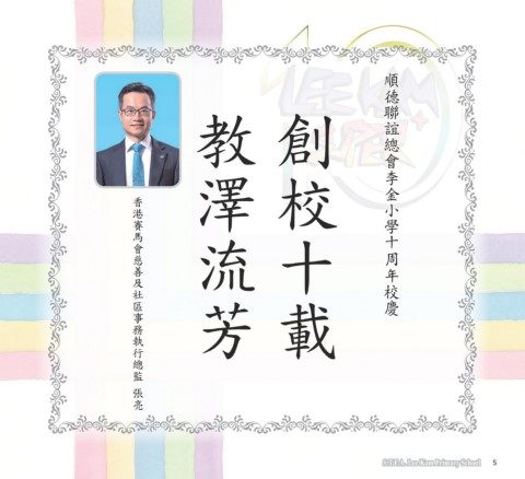 順德聯誼總會李金小學 順德聯誼總會李金小學十周年校慶 順德聯誼總會李金小學十周年校慶 教澤流芳 創校十載 教澤流芳 創校十載 香港賽馬會慈善及社區事務執行總監張亮 香港賽馬會慈善及社區事務執行總監張亮 十周年 校慶 S.T.F.A. Lee Kam Primary School 5