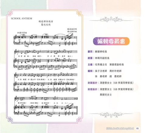 編輯委員會 顧問:蘇碧婷校長 統籌:林珮玲副校長 主編:任燕儀主任 葉碧君副校長 編輯:吳子汶老師 周妙玲老師 徐 晨老師 趙 霞老師 封面設計:馮楚雯女士(6B 李賞同學家長) 封底設計:馮楚雯女士(6B 李賞同學家長) 黃穎兒女士 S.T.F.A. Lee Kam Primary School 81