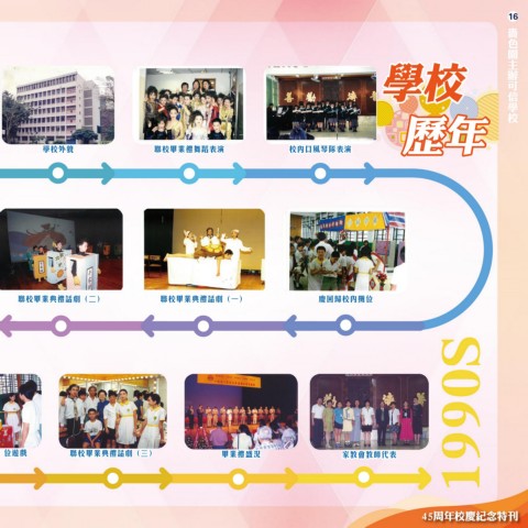 16 嗇 色 園 主 學校 辦 可 信 學 校 歷年 學校外貌 聯校畢業禮舞蹈表演 校內口風琴隊表演 聯校畢業典禮話劇(二) 聯校畢業典禮話劇(一) 慶回歸校內攤位 慶回歸校內攤 位遊戲 聯校畢業典禮話劇(三) 畢業禮盛況 家教會教師代表 1990S 45周年校慶紀念特刊