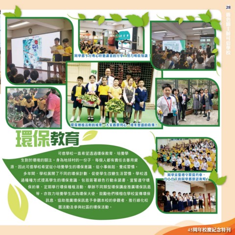 等。亦致力培養學生成為環保大使,鼓勵他們積極在學校宣傳環保