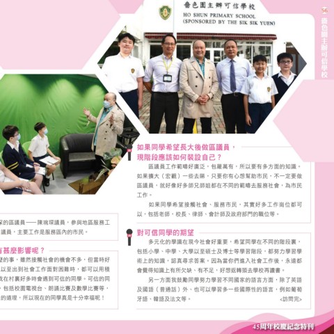 作,後來當選成為區議員,到現在已成為一個全職區議員,主要工作是服務區內的市民。 對可信同學的期望