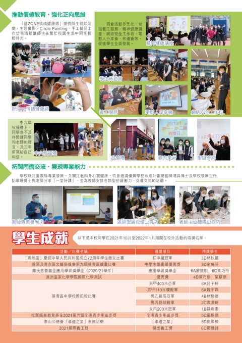 學生成就 以下是本校同學在2021年10月至2022年1月期間在校外活動的得獎名單: