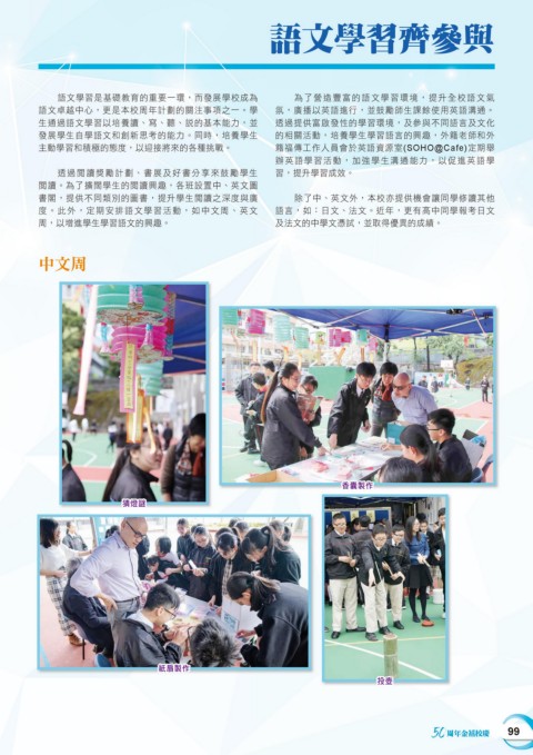 度。此外,定期安排語文學習活動,如中文周、英文 語言,如:日文、法文。近年,更有高中同學報考日文