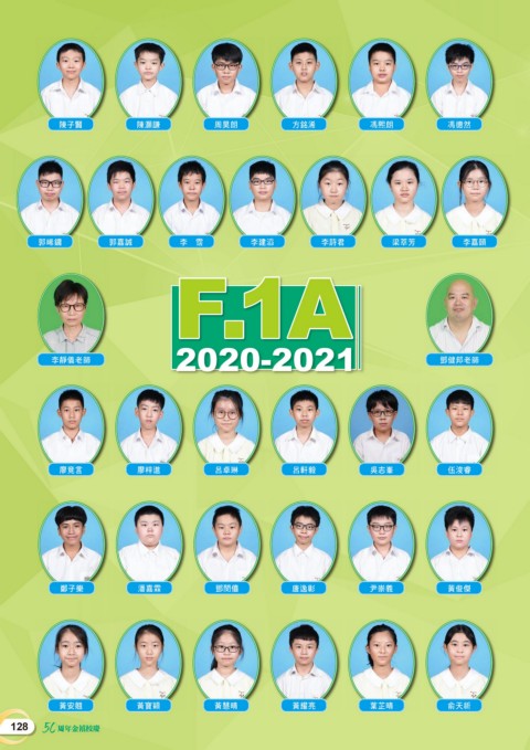 陳子賢 陳灝謙 周昊朗 方銘浠 馮熙朗 馮德然 郭晞鏞 郭嘉誠 李 霑 李建滔 李詩君 梁萃芳 李嘉頤 F.1A 2020-2021 李靜儀老師 鄧健邦老師 廖竟言 廖梓進 呂卓琳 呂軒毅 吳志峯 伍浚睿 鄭子樂 潘嘉霖 鄧閔僖 唐逸彰 尹崇義 黃俊傑 黃安翹 黃寶穎 黃慧晴 黃耀亮 葉芷晴 俞天祈 128 50 周年金禧校慶