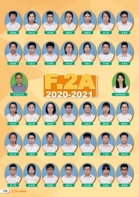 陳建璋 陳祉澄 周昭樂 陳慧璇 陳嘉盈 卓芷萱 蔡景熙 鍾領剛 何智滔 林澤峰 劉欣瑜 李樂欣 李保鋒 李偉斌 F.2A 2020-2021 彭就恩老師 孫琬茜老師 李昀欣 魏泳桐 鮑鎧瑤 潘衍彰 宋嘉強 譚綺華 謝穎絃 蔡芷言 汪鋆宇 韋傑林 黃綽泓 黃浩揚 王家皓 黃栢澄 黃天朗 吳梓晴 甄譽隆 楊梓安 姚天曦 容嘉鈞 張耀輝 132 50 周年金禧校慶