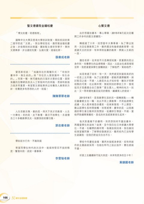 學如逆水行舟,不進則退 學校今年慶祝金禧,雖然未能親身參與,但有幸創