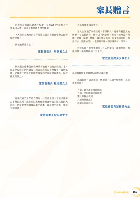 象,好讓孩子們每天能在充滿愛的校園裡學習成長。祝校 熱烈恭賀聖文德書院50周年金禧校慶
