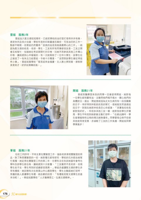 在校工作21年,平時主要在實驗室工作,協助老師清理實驗室的用