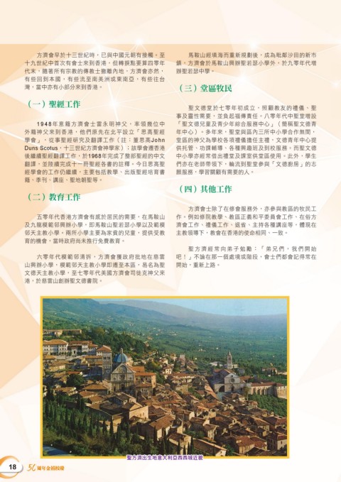 及九龍模範邨興辦小學,即馬鞍山聖若瑟小學以及範模 濟會工作、禮儀工作、退省、主持各種講座等,體現在