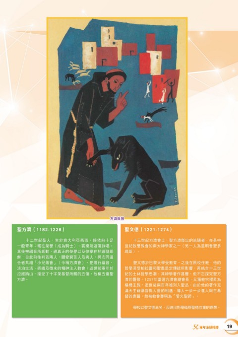 合者共組「小兄弟會」(今稱方濟會),把履行福音、 聖文德於巴黎大學受教育,之後在原校任教,他的