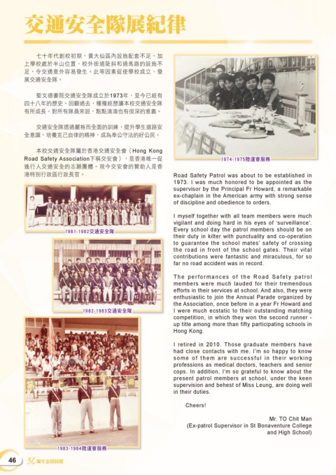 1981-1982交通安全隊 Every school day the patrol members should be on