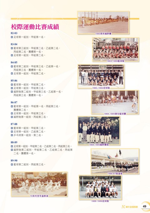足球第一組別,甲組第三名。 1984-1985師生籃球賽