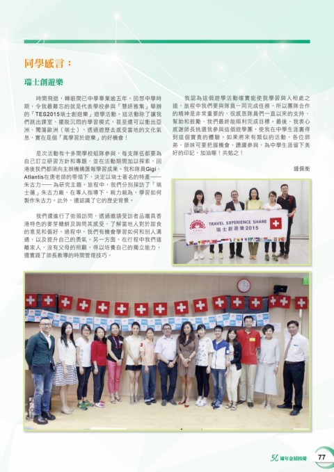 的「TES2015瑞士創遊樂」遊學活動。這活動除了讓我 的精神是非常重要的,很感恩隊員們一直以來的支持、