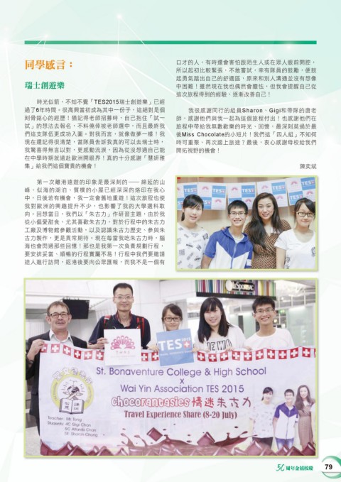 現在還記得很清楚,當隊員告訴我真的可以去瑞士時, 時可重聚、再次踏上旅途?最後,衷心感謝母校給我們