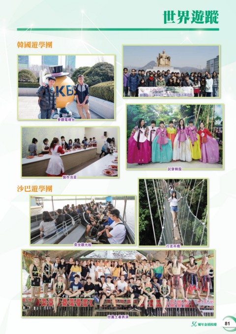 世界遊蹤 韓國遊學團 參觀電視台 試穿韓服 製作泡菜 沙巴遊學團 乘坐觀光船 行走吊橋 欣賞土著表演 50 周年金禧校慶 81