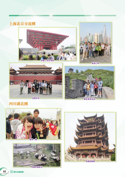 上海北京交流團 參觀上海世博館 黃浦江畔 遊覽故宮 攀登萬里長城 四川湖北團 團員一攝 參觀黃鶴樓 參觀熊貓基地 82 50 周年金禧校慶