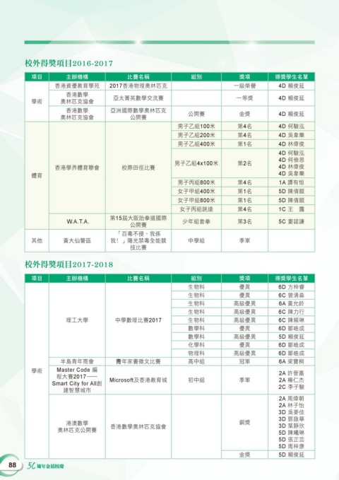項目 主辦機構 比賽名稱 組別 獎項 得獎學生名單
