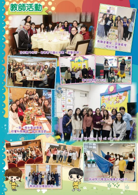 教師活動 教職員團契,認識真理, 彼此代禱! 全校親子旅行,老師都可藉此相聚,連繫感情。 戲有益教師工作坊 一年一度的聖誕聚餐, 校董和教職員一起共渡佳節。 Happy Birthday to all of you! 我哋努力學習升旗儀式和技巧。 教師培訓獲益良多! 26