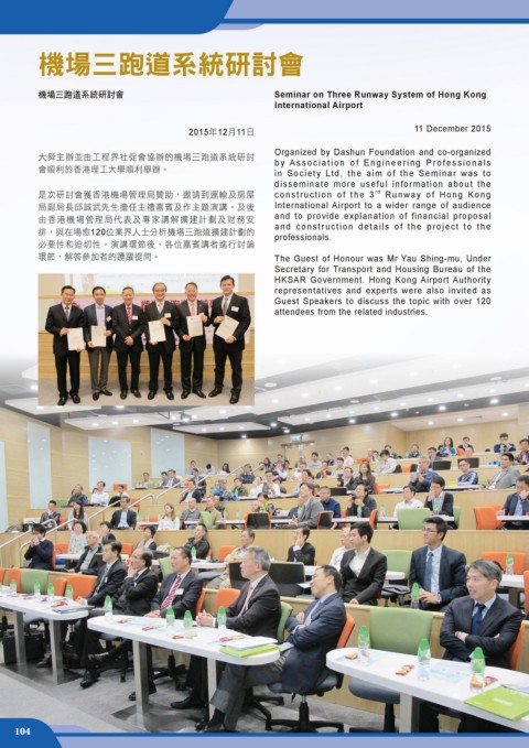 是次研討會獲香港機場管理局贊助,邀請到運輸及房屋 construction of the 3 Runway of Hong Kong