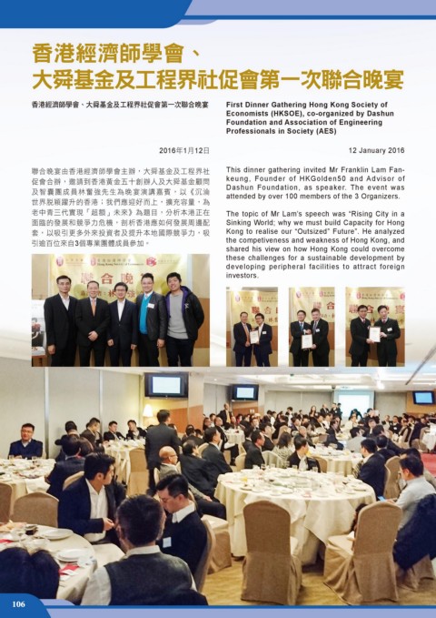 聯合晚宴由香港經濟師學會主辦,大舜基金及工程界社 This dinner gathering invited Mr Franklin Lam Fan-