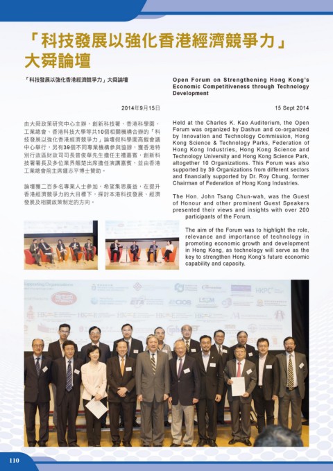 由大舜政策研究中心主辦,創新科技署、香港科學園、 Held at the Charles K. Kao Auditorium, the Open