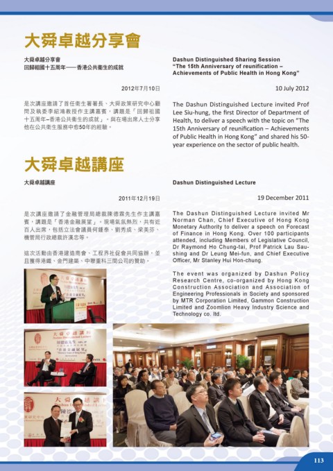 他在公共衛生服務中愈50年的經驗。 15th Anniversary of reunification – Achievements