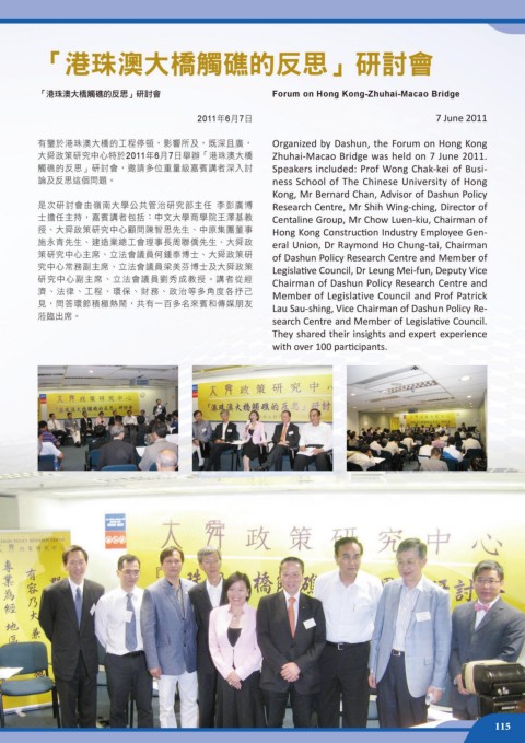 大舜政策研究中心特於2011年6月7日舉辦「港珠澳大橋 Zhuhai-Macao Bridge was held on 7 June 2011.