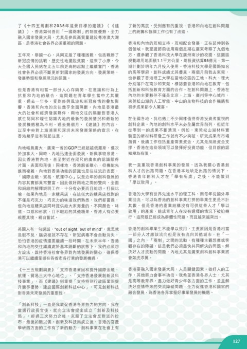 了《十四五規劃和 2035 年遠景目標的建議》(《建 了新的高度,受到應有的重視,香港和內地在創科問題