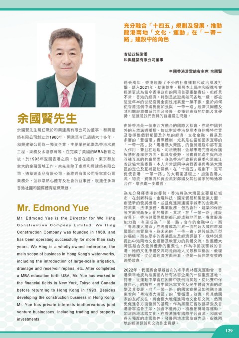 拿大的金融領域工作。余先生除了處理和興建築有限公 省政協常務委員,本人非常認同中央對香港與粵港大灣
