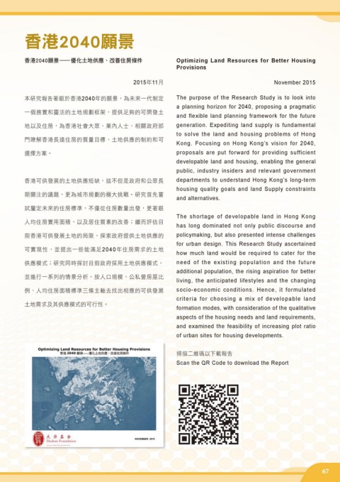 本研究報告著眼於香港2040年的願景,為未來一代制定 The purpose of the Research Study is to look into
