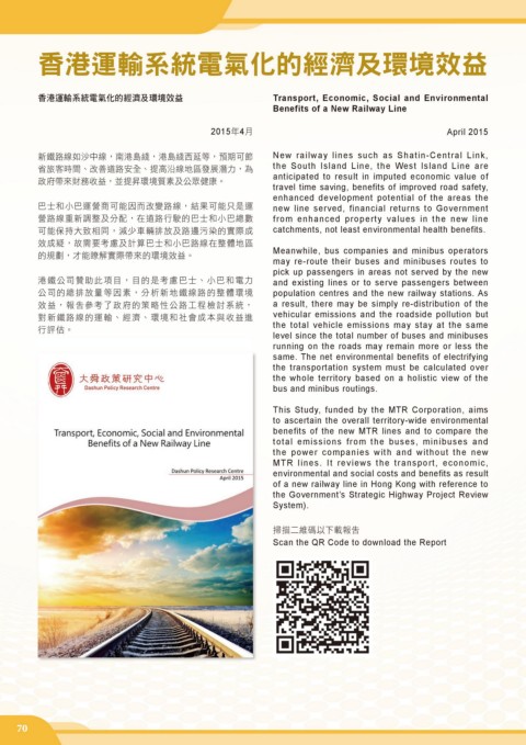香港運輸系統電氣化的經濟及環境效益 Transport, Economic, Social and Environmental