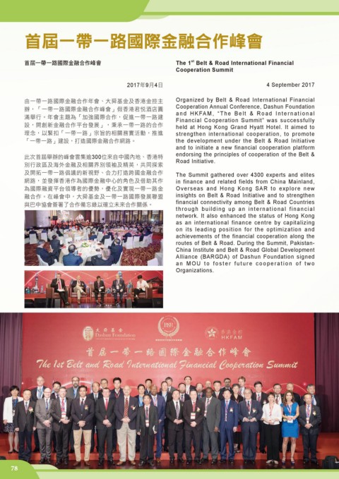 設,開創新金融合作平台發展」,秉承一帶一路的合作 held at Hong Kong Grand Hyatt Hotel. It aimed to