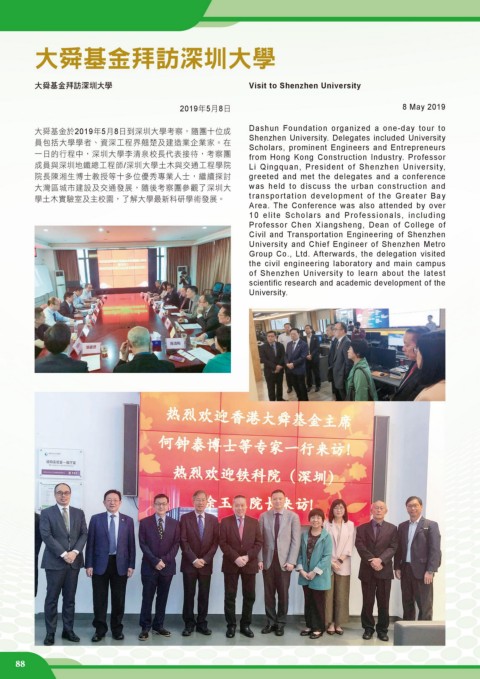 大舜基金於2019年5月8日到深圳大學考察,隨團十位成 Dashun Foundation organized a one-day tour to