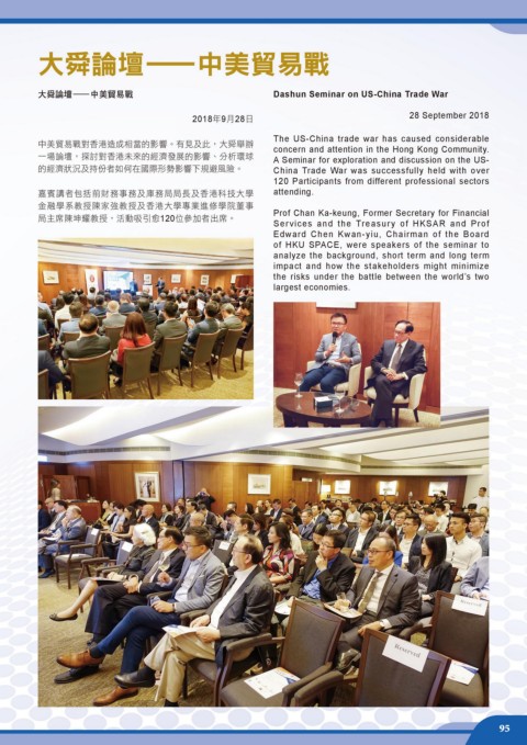 的經濟狀況及持份者如何在國際形勢影響下規避風險。 China Trade War was successfully held with over