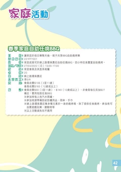 備 註 : 會員收費$90(3至11歲)、$140(12歲或以上)、非會員每位另加$27
