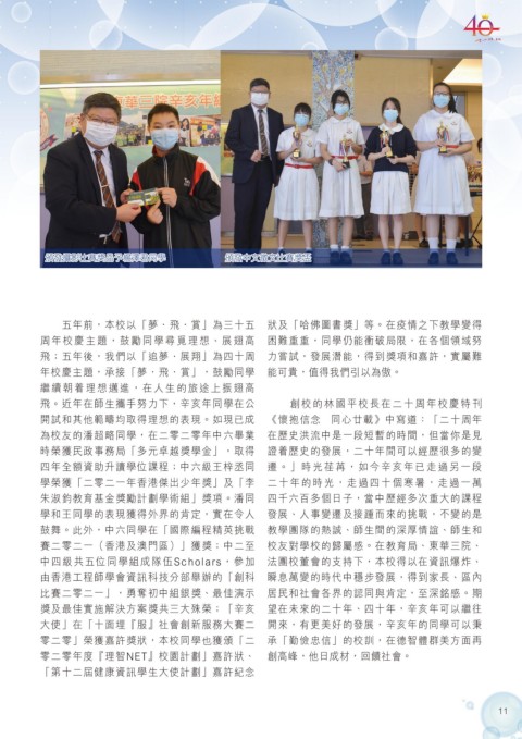 飛;五年後,我們以「追夢.展翔」為四十周 力嘗試,發展潛能,得到獎項和嘉許,實屬難