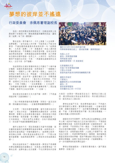 丈夫接着說:「現在我們生活穩定,沒有什麼經濟壓 親愛的辛亥年同學們,你們也是正在追夢路途上的青