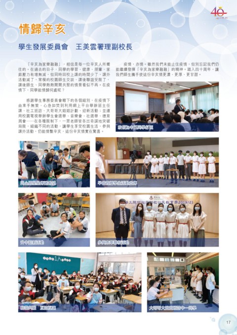 往的。在過去的日子,同學的學習、健康、朋輩、家 能繼續發揮「辛亥為家樂融融」的精神。踏入四十周年,讓
