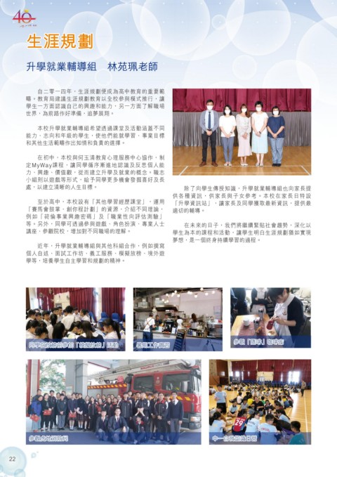處,以建立清晰的人生目標。 除了向學生傳授知識,升學就業輔導組也向家長提
