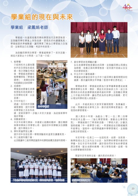 題,提升學術水平。 年級學生,協助中一級同學適應中學學習模式,並推動