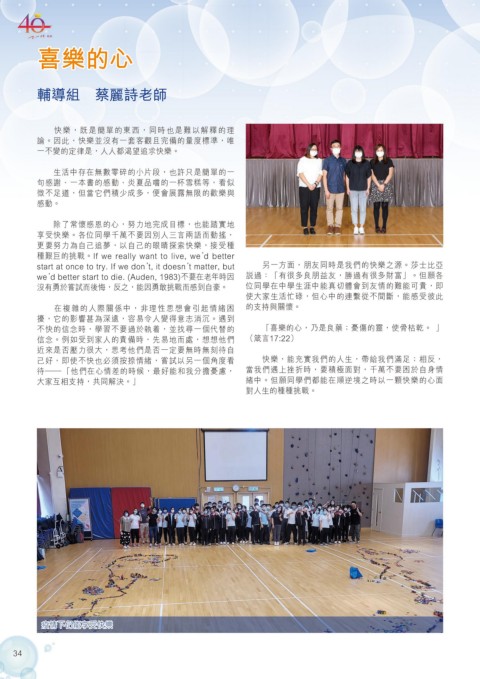 大家互相支持,共同解決。」 緒中。但願同學們都能在順逆境之時以一顆快樂的心面
