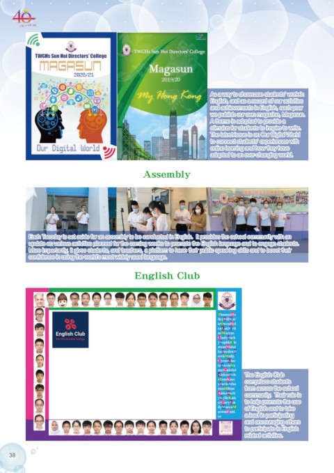 Each T uesday is set aside for an assembly to be conducted in English. It provides the school community with an