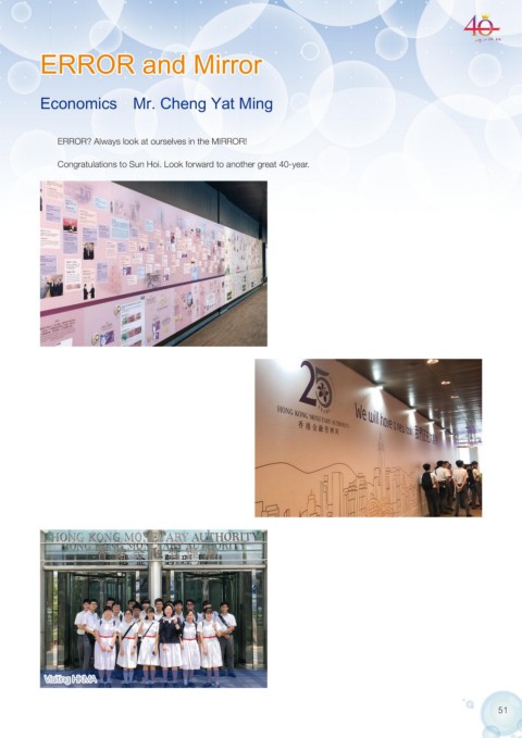 ERROR and Mirror ERROR and Mirror Economics Mr. Cheng Yat Ming ERROR? Always look at ourselves in the MIRROR! Congratulations to Sun Hoi. Look forward to another great 40-year. Visiting HKMA Visiting HKMA 51